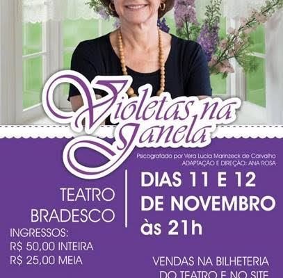 A talentosíssima atriz Ana Rosa desembarca em Belo Horizonte para apresentar o espetáculo que é sucesso por onde passa há 19 anos. Nos dias 11 e 12 de novembro, sexta e sábado, às 21h, o Teatro Bradesco (Rua da Bahia, 2244, Lourdes, Belo Horizonte, MG) recebe “Violetas na Janela”, montagem que trata sobre a vida após a morte.